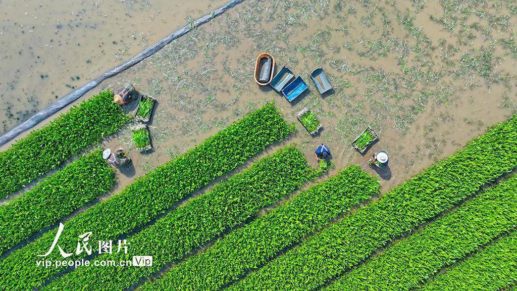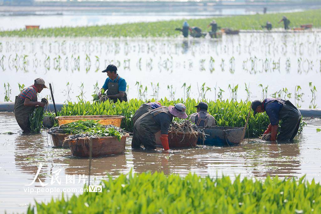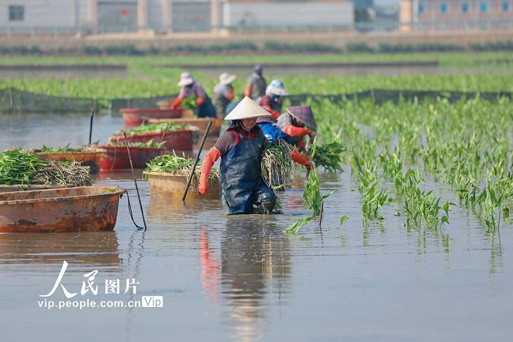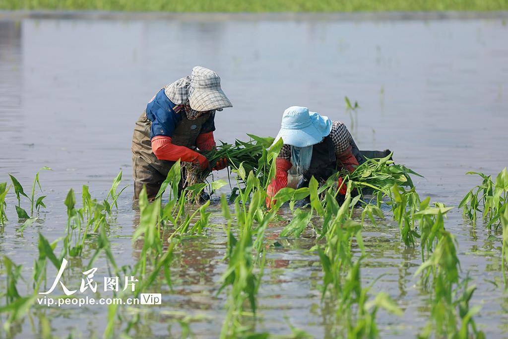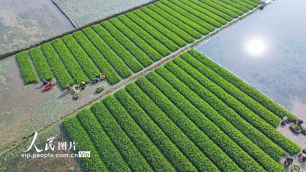 2026年3月5日,云南曲靖陆良县三岔河镇水生蔬菜种植片区,农户们正抢抓晴好天气,移栽慈姑。王勇摄(人民图片网)